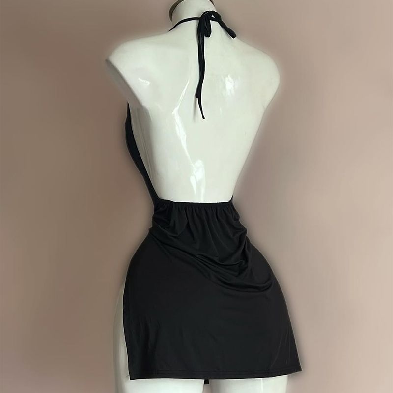 Sexy Lingerie Passion Temptation Suspender Nightdress Skirt Y2k Retro Street V Neck Slit Back Suspender Backless Evening Dress